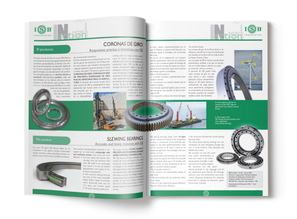 A coroa de giro ISB (também conhecida como anel de giro ou rolamento de giro) é um componente mecânico de grande porte desenvolvido para permitir movimentos rotacionais lentos entre duas partes estruturais. Normalmente, entre uma base fixa e uma estrutura móvel, suportando altas cargas radiais, axiais e momentos de inclinação ao mesmo tempo.